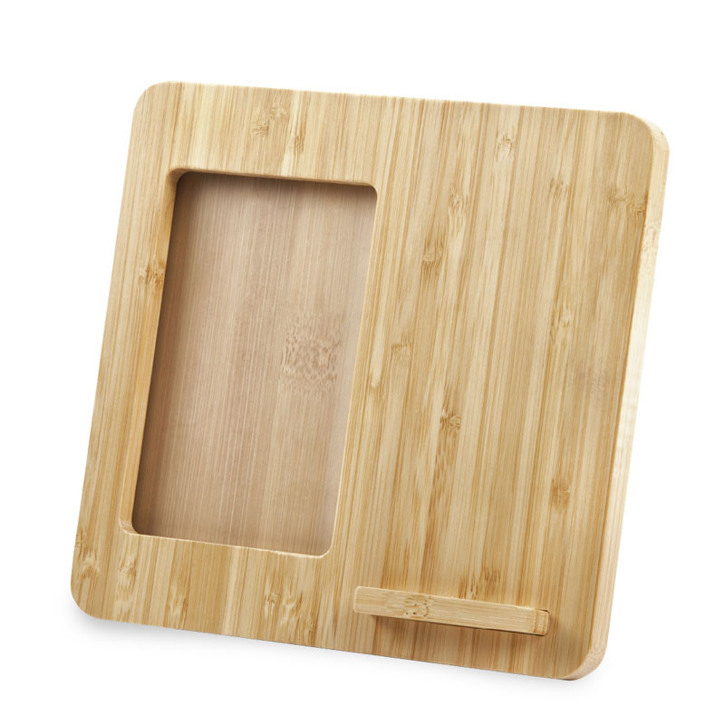 מטען אלחוטי מהיר 15W המשלב מסגרת לתמונה מבמבוק.המסגרת מתאימה לתמונה בגודל 15×10 ס"מ וכוללת רגל תמיכה ממתכת. המטען פועל בתקן Qi עם יעילות טעינה של מעל 75%, וכולל מערכות הגנה מתקדמות מפני חימום יתר, פריצת מתח וזיהוי עצמים ממתכת (FOD) – לטעינה בטוחה ואמינה בכל שימוש. בגודל 17.5×17.5 ס"מ, מוצר פרסומי יוקרתי ושימושי למשרד או לבית, עם אפשרות להדפסת או חריטת לוגו וסלוגן בהתאמה אישית.