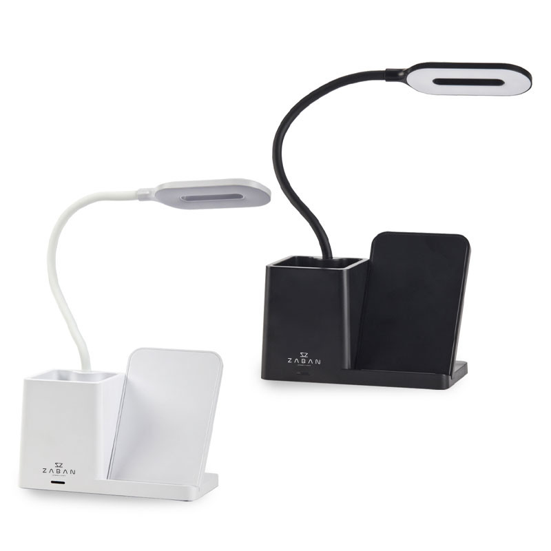 עמדת טעינה QI עם מנורה וכוס לעטים