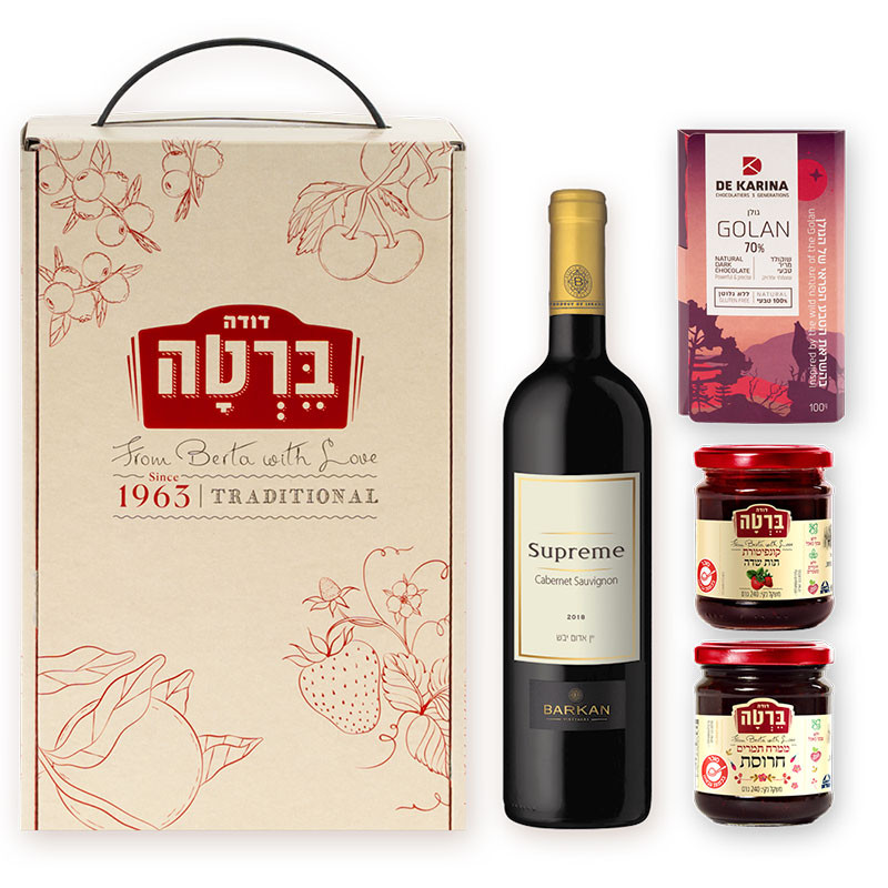 מארז חגיגי עם יין ושוקולד