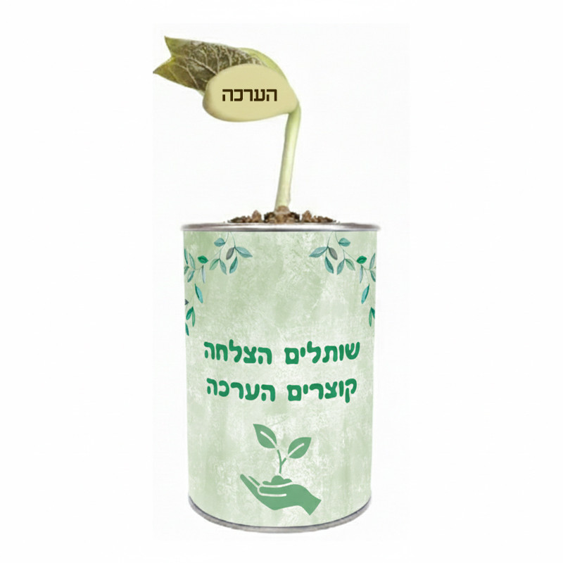שעועית הקסם בפחית ממותגת היא מתנה מקורית ומרגשת. צמח פלא קטן עם מסר גדול – מושלם לאירועי חברה, מתנות קד״מ, ימי הולדת, חגים ואירועים מיוחדים. הפחית ממותגת בחריטת לייזר איכותית, עם אפשרות לחרוט עד 5 אותיות לכל מילה ולהעביר מסר אישי ומדויק. לאחר כ־5 ימי השקיה בלבד, השעועית נובטת והופכת לחוויה ירוקה, שמחברת בין מיתוג, רגש וצמיחה.