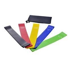 סט 5 גומיות התנגדות וכושר עשויות מבד לטקס ברמת גמישות משתנה ליצירת התנגדות מדורגת למגוון תרגילי כושר ועוצמות אימון משתנה, כולל תיק נשיאה קומפקטי ונוח.