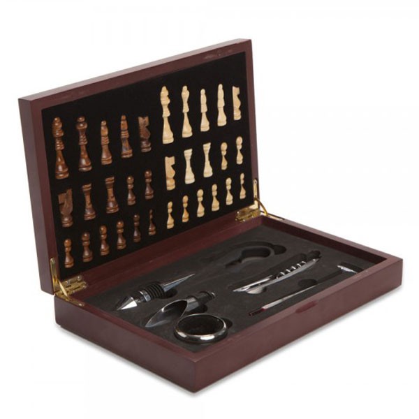 מתנה מושלמת לעובדים וללקוחות! סט אביזרים ליין שמשולבים בתוך מארז שחמט מרשים. מאפשר פתיחה ומזיגה של כוסות יין לצד משחק אסטרטגיה איכותי וקלאסי. שילוב של 2 עולמות יוקרה שמסמלים רוגע ושלווה