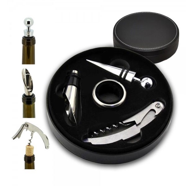 מארז יוקרתי דמוי עור שמאגד בתוכו 4 אביזרים לפתיחה ומזיגה של בקבוק יין. כולל שטח מיתוג ענקי שמאפשר לכם למתג את לוגו החברה, סלוגן או ברכת שנה טובה בצורה מרשימה ויוקרתית